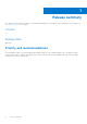 1 Release summary The OMIVV 5.1 release supports vSphere 7.0 and firmware management using vSphere Lifecycle Manager. For information, see New and enhanced features on page 6. Version 5.1 Release date April 2020 Priority and recommendations Recommended: Dell EMC recommends applying this update during your next scheduled update cycle.