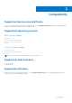 2 Compatibility Supported devices and platforms For more information about supported devices and platforms, see the Hardware Requirements section in the OpenManage Integration for VMware vCenter Version 5.1 Installation Guide. Supported operating system ESXi version support ● ● ● ● v6.0 U3 v6.5, v6.5 U1, v6.5 U2, v6.5 U3 v6.7, 6.7 U1, v6.7 U2, v6.7 U3 v7.0 vCenter version support ● v6.5 U2, v6.5 U3 ● v6.7, v6.7 U1, v6.7 U2, v6.7 U3 ● v7.0 NOTE: Use the latest patch build 13638625 or later for vCenter 6.