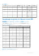 表 8. 管理対象ノード ポート番号 プロトコル ポートタイプ 最大暗号化レベ ル 方向 使用状況 設定可能 631 IPP UDP/TCP なし 出力 インターネット プリンティング プロトコル(IPP) 無 69 TFTP UDP 128 ビット 入力 / 出力 トリビアルファ イル転送 無 111 NFS UDP/TCP 128 ビット 入力 SUN リモートプ ロシージャコー ル(ポートマッ プ) 無 68 BOOTP UDP なし 出力 ブートストラッ ププロトコルク ライアント 無 OpenManage Integration for VMware vCenter 要件 管理対象ホスト上のサポートされている ESXi バージョン 次の表は、管理対象ホスト上でサポートされている ESXi バージョンに関する情報を提供するものです。 表 9. サポートされている ESXi バージョン ESXi バージョンサポー ト サーバの世代 第 11 世代 第 12 世代 第 13 世代 v5.0 はい はい いいえ v5.