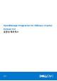 1 개요 이 문서에는 OMIVV(OpenManage Integration for VMware vCenter) 및 OMIVV 소프트웨어에 포함된 기타 기술 설명서에 대한 업데이 트된 정보가 있습니다. OpenManage Integration for VMware vCenter 4.0은 다음과 같은 기능을 제공합니다. ● vSphere 6.5 및 6.0 U2 지원 ● vSphere 6.5 자동 관리 HA 지원 및 Dell 호스트 및 섀시 구성 요소 심각도 사용자 지정 ● 여러 클러스터에서 병렬 펌웨어 업데이트 작업에 대한 지원 ● vROPS(vRealize Operations)와의 통합 지원 ● OMSA 8.3 및 OMSA 8.4 지원 ● 최신 버전의 OMIVV 가용성에 대한 알림 ● 단일 vCenter 인스턴스 또는 다중 vCenter 서버에서 최대 1,000개의 호스트 지원 ● 모든 13세대 플랫폼 지원 노트: OMIVV 4.