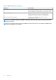 Tabelle 23. Informationen zu einzelnem Host (fortgesetzt) Komponente Informationen • • • • • • Garantiezusammenfassung ANMERKUNG: Um einen Servicestatus anzuzeigen, stellen Sie sicher, dass Sie einen Service-Job auszuführen. Siehe Ausführen eines ServiceabfrageJobs. Auf der Seite Servicezusammenfassung können Sie das Service-Ablaufdatum überwachen.