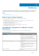 Anmerkungen, Vorsichtshinweise und Warnungen ANMERKUNG: Eine ANMERKUNG macht auf wichtige Informationen aufmerksam, mit denen Sie Ihr Produkt besser einsetzen können. VORSICHT: Ein VORSICHTSHINWEIS warnt vor möglichen Beschädigungen der Hardware oder vor Datenverlust und zeigt, wie diese vermieden werden können. WARNUNG: Mit WARNUNG wird auf eine potenziell gefährliche Situation hingewiesen, die zu Sachschäden, Verletzungen oder zum Tod führen kann. Copyright © 2017 Dell Inc.