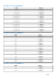 表 10. 受管節點 (iDRAC 或 CMC 或管理模組) 連接埠號 通訊協定 連接埠 最大的加密 碼 類型 層級 方向 目的地 使用 說明 用來從 OMIVV 存取 iDRAC 組態。用 於部署流程。 4001 至 NFS UDP 無 輸入/輸出 4004 iDRAC 至/從 OMIVV 公用共用 可讓 iDRAC 存取由 OMIVV 裝置公開 的 NFS 公用共用。其用於作業系統部 署和韌體更新。 用來從 OMIVV 存取 iDRAC 組態。用 於部署流程。 69 TFTP UDP 128 位元 輸入/輸出 iDRAC 至/從 OMIVV 簡單式檔案傳輸 用於從管理站順利管理 iDRAC。 OpenManage Integration for VMware vCenter 需求 受管主機上安裝支援的 ESXi 版本 下表提供在受管理主機上支援之 ESXi 版本的相關資訊: 表 11. 支援的 ESXi 版本 ESXi 版本支援 伺服器世代 11G 12G 13G 14G 5.1 版 Y Y N N 5.
