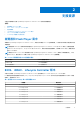 表 4. 適用於 Dell PowerEdge 第 13 代伺服器的 BIOS 伺服器 最低版本 T630 1.0.4 或更新版本 R730 1.0.4 或更新版本 R730xd 1.0.4 或更新版本 R430 1.0.2 或更新版本 R530 1.0.2 或更新版本 R830 1.0.2 或更新版本 R930 1.0.2 或更新版本 T130 1.0.2 或更新版本 T330 1.0.2 或更新版本 T430 1.0.2 或更新版本 R230 1.0.2 或更新版本 R330 1.0.2 或更新版本 M630 1.0.0 或更新版本 M830 1.0.0 或更新版本 FC430 1.0.0 或更新版本 FC630 1.0.0 或更新版本 FC830 1.0.0 或更新版本 表 5. 適用於部署的 iDRAC 和 Lifecycle Controller 代 版本 iDRAC Lifecycle Controller Dell PowerEdge 第 11 代伺服器 3.35 的模組化,1.85 的機架或直立型 1.5.