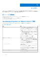 ○ VMware vCenter Server アプライアンスの場合、/etc/vmware/vsphere-ui/vc-packages/vsphere-clientserenity にアクセスします。Windows vCenter の場合、vCenter アプライアンスの C:\ProgramData\VMware\vCenterServer\cfg\vsphere-ui\vc-packages\vsphere-client-serenity フォ ルダーに進み、com.dell.plugin.OpenManage_Integration_for_VMware_vCenter_WebClient-X.0.0.XXX のような古いデータが存 在するか確認します。 ○ 古いバージョンの OMIVV に対応するフォルダを手動で削除します。 ○ vSphere Client services for vSphere Client(HTML5)を再起動します。 影響を受けるバージョン:5.