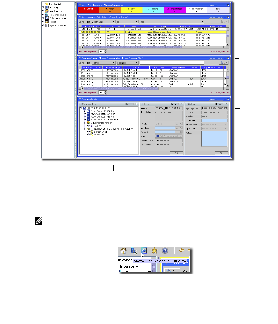 to most available application functions with the Show / Hide Navigation Window