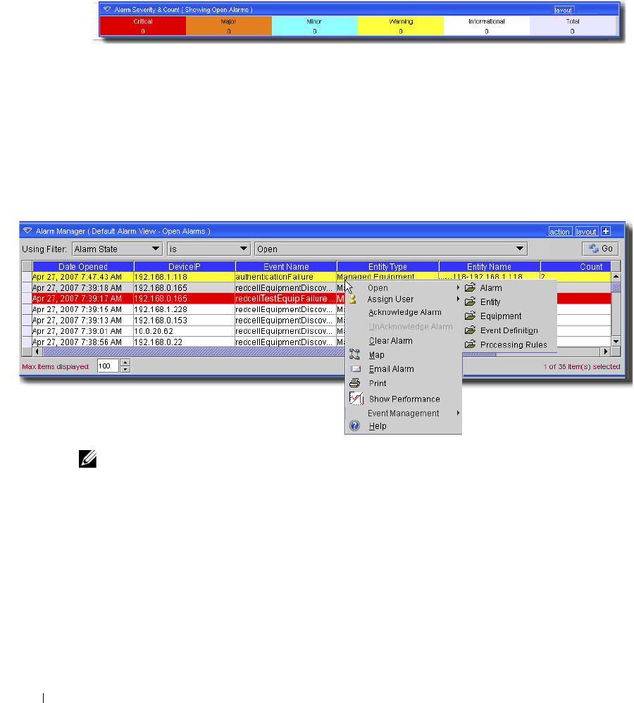 filter, only Open alarms appear on these screens. You can change displayed columns