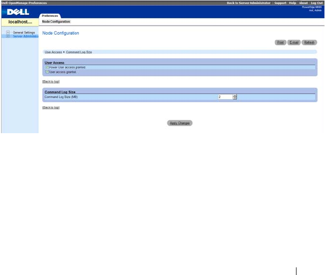 Like the Server Administrator home page, the Preferences home page has