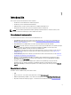 Introducción 1 En este guía se proporciona información sobre lo siguiente: • Instalación de Server Administrator en Managed Systems • Instalación y uso de la función Remote Enablement. • Administración de sistemas remotos mediante Server Administrator Web Server. • Configuración del sistema antes y durante una implementación o actualización.