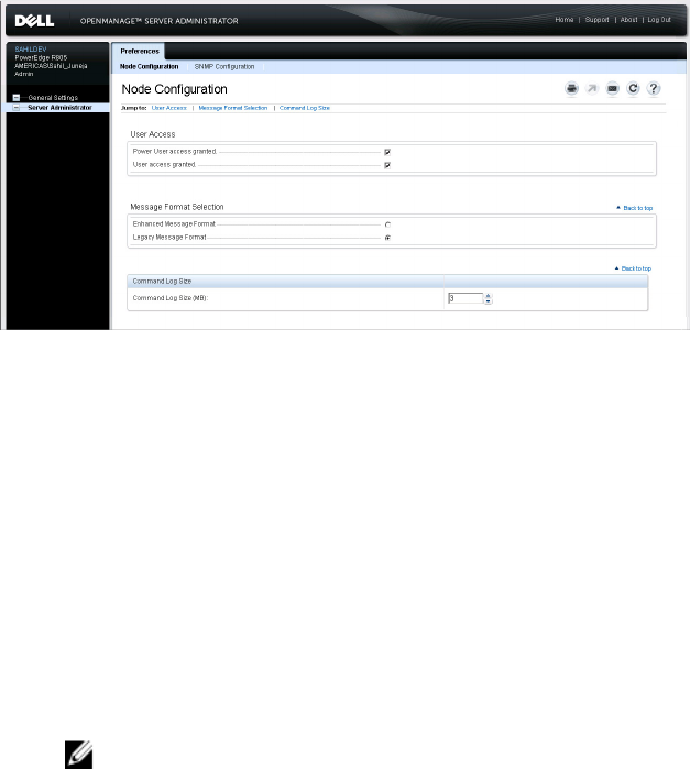 de usuario avanzado. Según los privilegios de grupo del usuario, la ventana de acciones del objeto Server Administrator