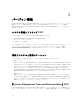 メモ: 『Systems Management Tools and Documentation』DVD: • RACTools.msi ファイルは SYSMGMT\ManagementStation\windows\DRAC にあります。 • RACTools_x64.msi ファイルは SYSMGMT\ManagementStation\windows\DRACx64 にありま す。 BMU をインストールするには、次のコマンドを使用して MSI ファイルを起動します。 msiexec /i BMC.msi メモ: 32 ビットインストーラのみが利用可能です。 メモ: BMC.msi ファイルは 『Systems Management Tools and Documentation』DVD の SYSMGMT \ManagementStation\windows\BMC にあります。 Active Directory Snap-In をインストールするには、次のコマンドを使用して MSI ファイルを起動します。 • 32 ビット向け: msiexec /i ADSnapIn.msi • 64.