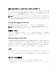 8 トラブルシューティング 接続サービスエラー Red Hat Enterprise Linux では、SELinux is set to enforced mode 場合、Dell Systems Management Server Administrator(SM SA)接続サービスが起動に失敗します。次の手順のいずれかを実行して、このサ ービスを起動してください。 • SELinux を Disabled モードまたは Permissive モードに設定する。 • SELinux の allow_execstack プロパティを ON 状態に変更する。次のコマンドを実行します: setsebool allow_execstack on • SM SA 接続サービスのセキュリティコンテキストを変更する。次のコマンドを実行します:chcon -t unconfined_execmem_t /opt/dell/srvadmin/sbin/dsm_om_connsvcd ログイン失敗のシナリオ 次のような場合に、管理下システムにログインできないことがあります。 • 無効または誤った IP アドレス