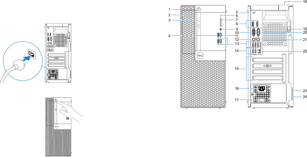 1. Power button and power light
