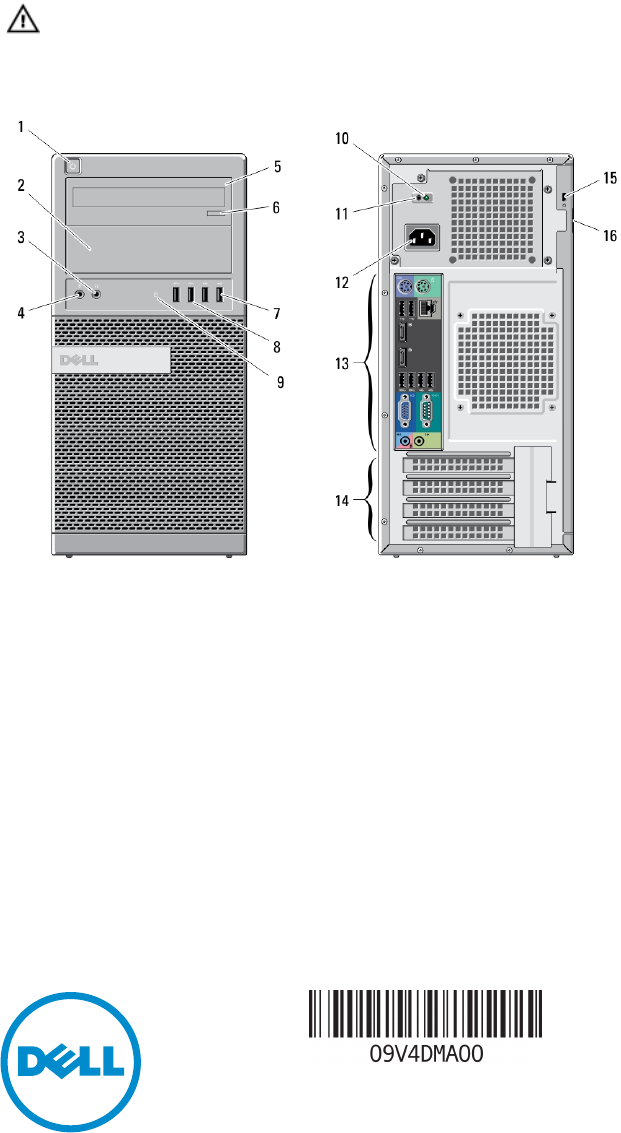 Dell OptiPlex XE2 セットアップと機能情報 警告について 警告: 物的損害、けが、または死亡の原因となる可能性があることを示しています。 ミニタワー — 正面図と背面図 図 1. ミニタワーの正面図と背面図 1. 2. 3. 4. 5. 6. 7. 8. 9. 電源ボタン、電源ライト 光学ドライブベイ ヘッドフォンコネクター マイクコネクター 光学ドライブ(オプション) オプティカルドライブ取り出しボタン USB 2.0 コネクター(2) USB 3.0 コネクター(2) ドライブアクティビティライト 10. 11. 12. 13. 14. 15. 16.