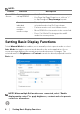 NOTE: Feature Function Quick DDM Quick key to Access call up DDM UI Control individual monitor in multiple monitor setup Description • Ctrl+Shift+D • Use Page Up/Page Down key or click on “>” to flip through all Easy Arrange layouts. • From dropdown box to select monitor, selected monitor has Dell logo shown. • Perform monitor self-test feature check. • Move DDM UI to the monitor to be controlled. • Press Ctrl+Shift+D to bring up the miniUI under the mouse pointer.