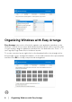 Organizing Windows with Easy Arrange Easy Arrange helps you to effectively organize your application windows on the desktop. You first choose a pre-defined layout pattern which suits your work, then you just need to drag the application windows into the defined zones. Press “>” or use Page Up/Page Down key to find more layouts.