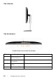 Vue arrière Vue arrière avec base du moniteur Étiquette Description Utilisez 1 Orifices de montage VESA (100 mm x 100 mm derrière le couvercle VESA attaché) Support mural du moniteur utilisant un kit de montage mural compatible VESA (100 mm x 100 mm). 2 Réglementaire classement du label Listes des approbations réglementaires. 3 Stand bouton de retrait Libère le pied du moniteur.