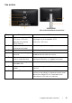 Identification des pièces et contrôles Vue de face Commandes en face avant Étiquette 8 Description 1 Touches de fonction (pour plus d’informations, voir Utilisation du moniteur) 2 Bouton d’alimentation (avec diode témoin) | À propos de votre moniteur