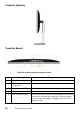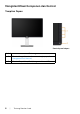 Tampilan Belakang Tampilan belakang dengan penyangga monitor Label Keterangan Penggunaan 1 Lubang pemasangan VESA Monitor pemasangan untuk di dinding (100 mm x 100 mm - di bagian menggunakan alat yang kompatibel dengan belakang terpasang VESA Cover) VESA (100 mm x 100 mm). 2 Peraturan label peringkat Daftar persetujuan peraturan. 3 Tombol pelepas penyangga Lepaskan penyangga dari monitor. 4 Slot kunci keamanan Melindungi monitor dengan kunci keamanan (kunci keamanan tidak diberikan).