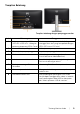 Mengidentifikasi Komponen dan Kontrol Tampilan Depan Kontrol panel depan Label 8 Keterangan 1 Tombol fungsi (Untuk informasi selengkapnya, lihat Mengoperasikan Monitor) 2 Tombol Daya Hidup/Mati (dengan indikator LED) | Tentang Monitor Anda