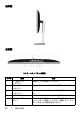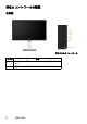 側面図 底面図 モニタースタンドなし底面図 ラベル 10 説明 使用 1 AC 電源コード コネクター 電源ケーブルを接続してください。 2 DisplayPort イン コネクター コンピューターに DP ケーブルを接続してください。 3 HDMI ポート コネクター コンピューターに HDMI ケーブルを接続してくだ さい。 4 VGA コネクター コンピューターに VGA ケーブルを接続してください。 5 USB アップストリーム ポート モニターに付いてきた USB ケーブルをモニターとコ ンピューターに接続してください。接続すると、モニ ターにある USB 接続を使用できます。 | 製品の特徴