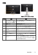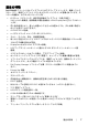 ユーザコントロー ルを押しても入力 信号がない 画像が表示され ず、LED が白く 点灯 • 信号ソースをチェックします。マウスを動かすかキー • • ピクチャが画面全 体に表示されない ピクチャを画面の 高さまたは幅いっ ぱいに表示でき ない ボードのどれかのキーを押して、コンピューターが省電 力モードに入っていないことを確認します。 信号ケーブルが正しく差し込まれているかどうかを チェックします。必要に応じて、信号ケーブルを差し込 み直してください。 コンピューターまたはビデオプレーヤーを再起動し ます。 • DVD の異なるビデオ形式により、モニターが全画面で 表示できないことがあります。 • 内蔵診断を実行します。 注:HDMI/DP モードを選択しているとき、自動調整機能は使用できません。 ユニバーサル シリアル バス (USB) 特有の問題 特定の症状 USB インター フェースが作動し ていない 発生した問題 USB 周辺機器が作 動していない 実行可能な解決策 • モニターの電源がオンになっているかをチェックし ます。 • アップストリーム ケーブルをコンピューターに