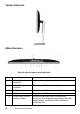Yandan Görünüm Alttan Görünüm Monitör standı olmadan alttan görünüm Etiket 10 Açıklama Kullanım 1 AC elektrik kablosu konektörü Güç kablosunu bağlayın. 2 DisplayPort giriş konektörü Bilgisayarınızı DP kablosu ile bağlayın. 3 HDMI giriş konektörü Bilgisayarınızı HDMI kablosu ile bağlayın. 4 VGA konektörü Bilgisayarınızı VGA kablosu ile bağlayın. 5 USB karşıya yükleme bağlantı noktası Monitörünüzle birlikte gelen USB kablosunu, monitörünüze ve bilgisayarınıza bağlayın.