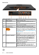 Front‑Panel Button Use the buttons on the front of the monitor to adjust the image settings. Front Panel Button Description 1 Use the Up (increase) and Down (decrease) keys to adjust items in the OSD menu. Up Down 2 Use the OK button to confirm your selection. OK 3 Use the Back button to go back to the previous menu.