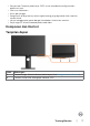 Tampilan Bawah Label 1 2 Keterangan Konektor daya Port HDMI 3 Kunci dudukan 4 5 Konektor DP (in) Konektor DP (out) 6 Konektor USB jenis C 7 Ports downstream USB (2) 10 | Tentang Monitor Penggunaan Untuk menyambungkan kabel daya monitor. Sambungkan komputer dengan kabel HDMI (dijual terpisah). Untuk memasang standar ke monitor dengan menggunakan sekrup M3 x 6 mm(sekrup tidak diberikan) Menyambungkan kabel DP komputer. DP output untuk monitor yang mendukung MST (Multi-Stream Transport).