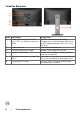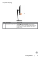 Tampilan Samping Label Keterangan Penggunaan 1 Ports downstream USB (2) Sambungkan perangkat USB. CATATAN: Anda hanya dapat menggunakan konektor ini setelah menyambungkan kabel USB Tipe-C ke komputer dan konektor USB Tipe-C pada monitor.