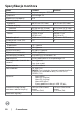 Waga z zamontowaną podstawą i kablami Masa bez podstawy i kabli (do montażu ściennego lub do montażu VESA) Waga zespołu podstawy Połysk ramki przedniej 6,94 kg (15,30 lb) 4,67 kg (10,30 lb) 1,93 kg (4,25 lb) 2-4 (tylko przód) Charakterystyki środowiskowe Model Temperatura Działanie Bez działania P2219HC P2419HC 0°C do 40°C (32°F do 104°F) • Przechowywanie: -20°C do 60°C (-4°F do 140°F) • Dostawa: -20°C do 60°C (-4°F do 140°F) Wilgotność Działanie Bez działania 20% do 80% (bez kondensacji) • Przechow