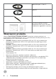 Problemy specyficzne dla produktu Charakterystyczne Co się stało objawy Za mały obraz Obraz ekranowy wyśrodkowany na ekranie, ale nie wypełnia całego obszaru wyświetlania Nie można OSD nie wyregulować wyświetla się na ustawień monitora ekranie za pomocą przycisków na panelu przednim Brak sygnału Brak obrazu, białe wejścia po światło.