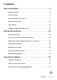 Contents About Your Monitor . . . . . . . . . . . . . . . . . . . . . . . . . . . . . . . . . 5 Package Contents . . . . . . . . . . . . . . . . . . . . . . . . . . . . . . .5 Product Features . . . . . . . . . . . . . . . . . . . . . . . . . . . . . . . 6 Identifying Parts and Controls . . . . . . . . . . . . . . . . . . . . . . . . 7 Monitor Specifications . . . . . . . . . . . . . . . . . . . . . .