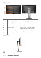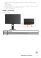 Veduta posteriore Etichetta Descrizione 1 Fori di montaggio VESA 100 mm x 100 mm (sotto la copertura VESA) 2 Etichetta di conformità 3 4 5 6 Elenca le approvazioni delle autorità di regolamentazione. Tasto di rilascio del supporto Rilascia il supporto dal monitor. Alloggio antifurto Usare un blocco di sicurezza (venduto separatamente) per fissare il monitor.