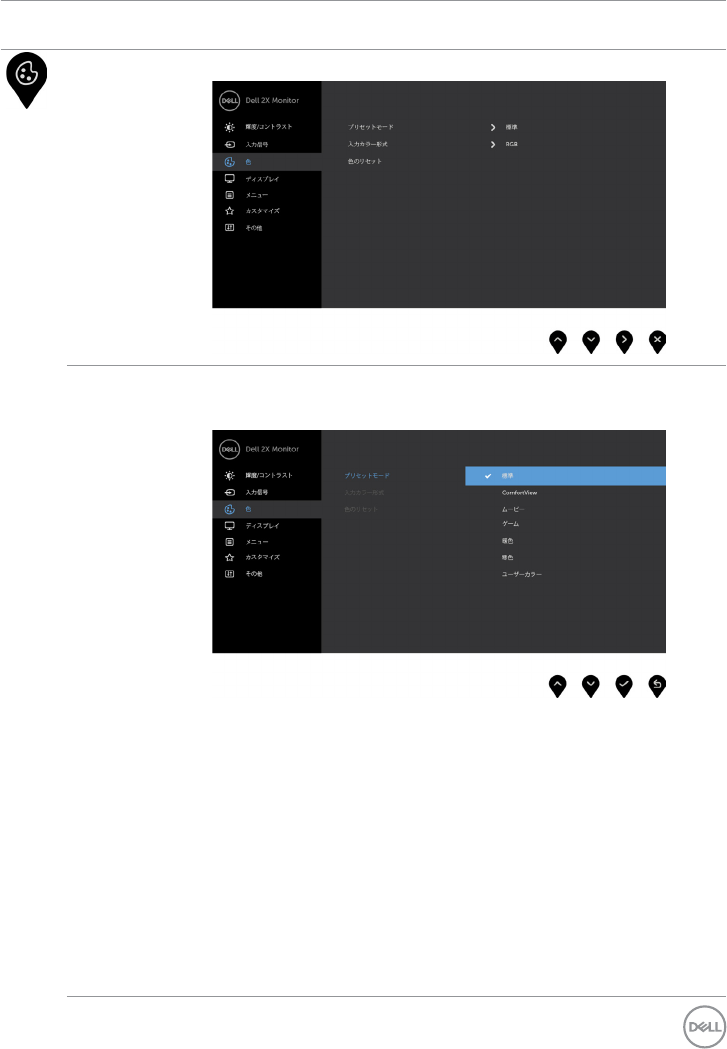 Color (色) 色設定モードを調整するには[カラー]メニューを使用します。