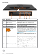 Front‑Panel Button Use the buttons on the front of the monitor to adjust the image settings. Front Panel Button Description 1 Use the Up (increase) and Down (decrease) keys to adjust items in the OSD menu. Up Down 2 Use the OK button to confirm your selection. OK 3 Use the Back button to go back to the previous menu.