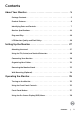 Contents About Your Monitor . . . . . . . . . . . . . . . . . . . . . . . . . . . . . . . . . . . . . . 5 Package Contents . . . . . . . . . . . . . . . . . . . . . . . . . . . . . . . . . . .5 Product Features . . . . . . . . . . . . . . . . . . . . . . . . . . . . . . . . . . . .6 Identifying Parts and Controls . . . . . . . . . . . . . . . . . . . . . . . . . . . .