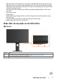 Lắp đặt màn hình Lắp giá đỡ LƯU Ý: Giá đỡ chưa được lắp đặt ở nhà máy khi vận chuyển. LƯU Ý: Những hướng dẫn sau chỉ khả dụng khi gắn giá đỡ được vận chuyển kèm với màn hình của bạn. Nếu bạn gắn một giá đỡ mua từ bất kể nguồn nào khác, hãy làm theo hướng dẫn lắp đặt đi kèm với giá đỡ đó. Gắn giá đỡ màn hình: 1 Làm theo hướng dẫn trên nắp bìa các-tông để gỡ giá đỡ khỏi tấm nệm phía trên bảo vệ nó. 2 Chèn hoàn toàn các khóa chân giá đỡ vào vị trí giá đỡ. 3 Nâng tay cầm vít và vặn vít ngược chiều kim đồng hồ.