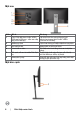 Bảng sau mô tả các nút ở mặt trước: Nút‑mặt trước Mô tả 1 Sử dụng nút này để chọn từ danh sách các chế độ màu cài sẵn. Nút tắt: Chế độ cài sẵn 2 Dùng nút này để truy cập trực tiếp menu “Độ sáng/Độ tương phản”. Nút tắt: Độ sáng/Độ tương phản 3 Dùng nút menu này để bật màn hình ảo (OSD) và chọn menu OSD. Xem Truy cập hệ thống menu. Menu 4 Dùng nút này để trở về menu chính hoặc thoát menu chính OSD.