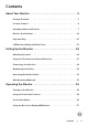 Contents About Your Monitor . . . . . . . . . . . . . . . . . . . . . . . . . . . . . . . . . . . . . . 5 Package Contents . . . . . . . . . . . . . . . . . . . . . . . . . . . . . . . . . . .5 Product Features . . . . . . . . . . . . . . . . . . . . . . . . . . . . . . . . . . . .6 Identifying Parts and Controls . . . . . . . . . . . . . . . . . . . . . . . . . . . .