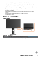 Etiquette Description 1 Ports USB descendants (2) Utilisation Connectez votre appareil USB. REMARQUE : Vous ne pouvez utiliser ce connecteur qu’après avoir raccordé le câble USB Type-C à l’ordinateur et le connecteur USB Type-C sur le moniteur. Vue de dessous Etiquette Description 1 Prise d’alimentation 2 ports HDMI 3 4 5 Verrou du support Connecteur DP(entrée) Connecteur de sortie DP 6 Connecteur USB type C 7 Ports USB descendants (2) Utilisation Pour brancher le cordon d’alimentation du moniteur.