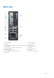 Back view 1. 3. 5. 7. 9. 11. 13. 15. 17. Line-out audio port Serial port DisplayPort/HDMI 2.0b/VGA/USB Type-C Alt-Mode (optional) Service tag label USB 2.0 ports (2) (one supports, SmartPower On) Expansion card slots Power supply diagnostic light External SMA antenna connectors (optional) Padlock ring 2. 4. 6. 8. 10. 12. 14. 16. PS2 Port (Keyboard) PS2 Port (Mouse) DisplayPorts (2) USB 3.