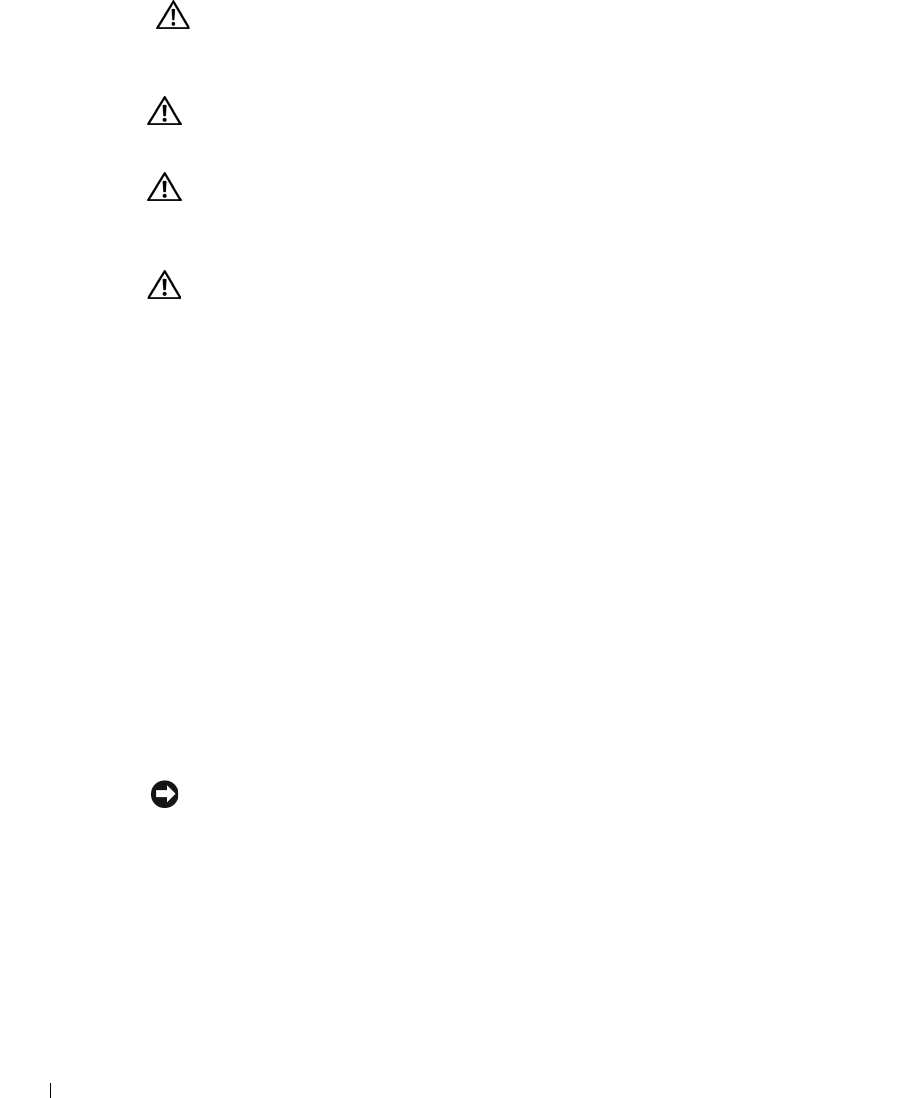 • Do not plug a modem or telephone cable into the network interface controller (NIC)