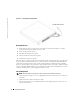 www.dell.com | support.dell.com 1 Fixez les tampons autocollants en caoutchouc à chaque endroit marqué, sur la partie inférieure du châssis. 2 Placez le périphérique sur une surface plane, tout en laissant 2 pouces (5,08 cm) de chaque côté et 5 pouces (12,7 cm) à l'arrière. 3 Assurez-vous que l'appareil est bien aéré. Connexion d'un périphérique sur un bloc d'alimentation Raccordez le câble d'alimentation CA fourni au connecteur d'alimentation CA situé sur le panneau arrière.