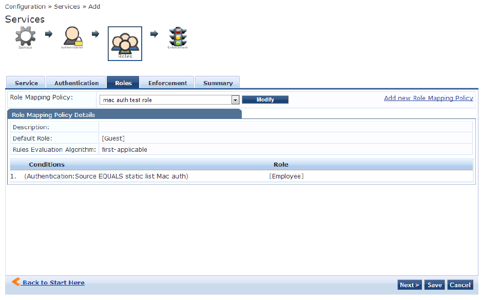 Figure 9. MAC Authentication ClearPass – Configuring Roles