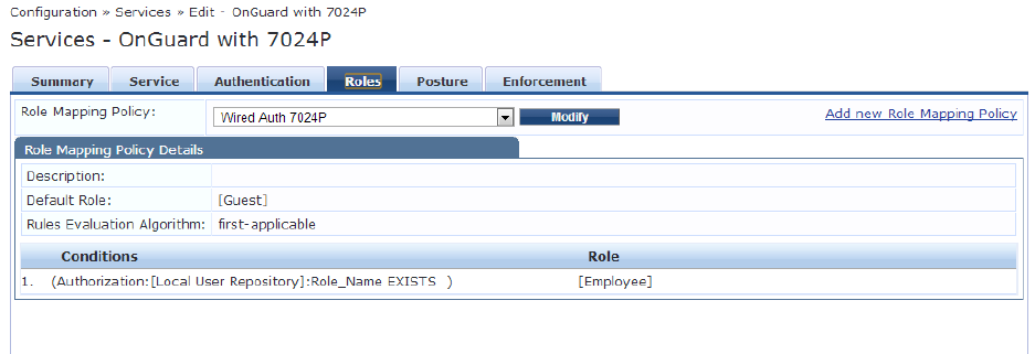 Figure 16. OnGuard ClearPass - Roles