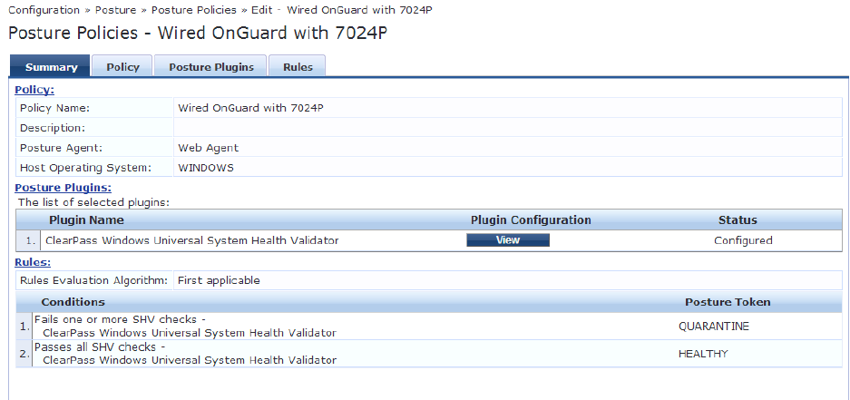o Check ClearPass Windows Universal System Health Validator checkbox
