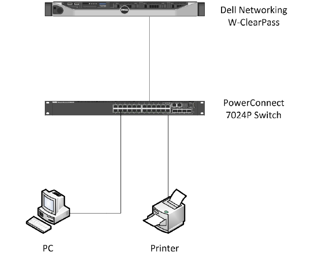ClearPass appliance is normally located in the Data Center. The Dell 7024P switch is also capable of