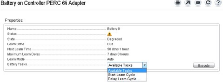 detección desde el menú desplegable Tareas de la batería en Open Manage Server Administrator (OMSA).