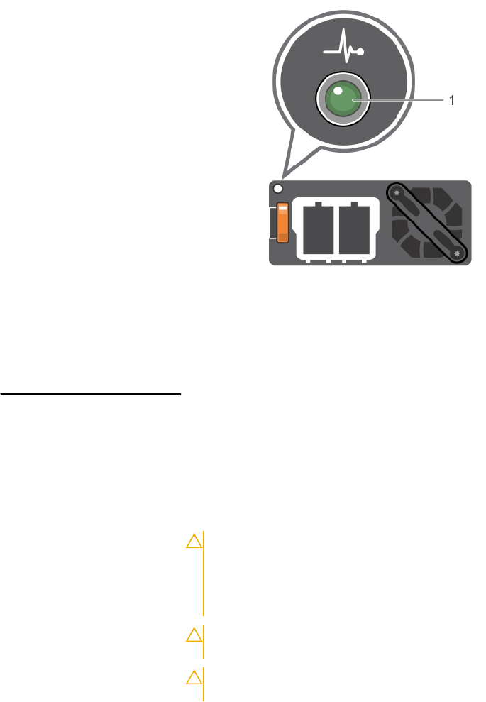 Vert clignotant Lors de l’installation à chaud d’une unité PSU, le voyant correspondant clignote en vert. Cela indique